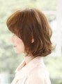 カット*アゴ下3cmのボブベース。空気感と柔らかい動きがでるようにカットします *カラー*10レベルのハニーブラウン。透明感がでます *パーマ* トップのボリュームと毛先の程よい動きが出るように全体にパーマをかけます。