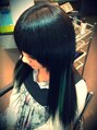 黒髪に、アクセントで派手なグリーンをいれて一味違った個性的なスタイルに☆カラーができない方でもエクステがあれば表現できます☆