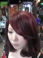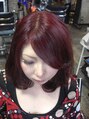 レッド系ヘアカラーのミディアムスタイルでございます。