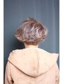 ブリーチを2回して薄くシルバーベージュをのせました。前髪を眉上に斜めにつくったマッシュショート。女度アップのコケティッシュスタイルです(^_^)
