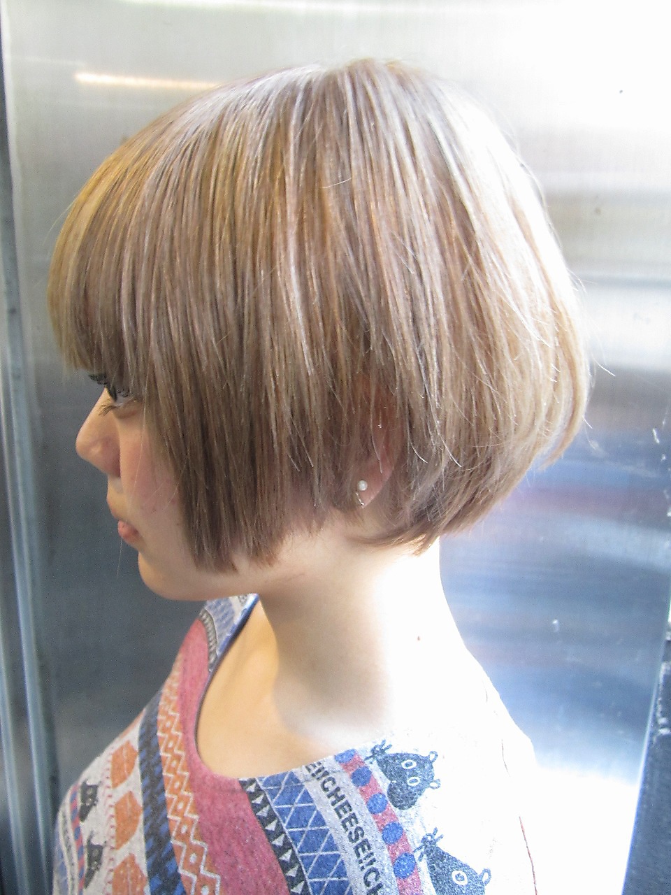 ナチュラルベージュ前下がりショート★襟足内側刈り上げ