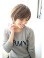 厚めバングのやや前下がりのカットラインで小顔に。後頭部と頭頂部は自然なボリューム感がでるような絶壁解消カット。カラーはメルティベージュで艶髪と透明感がでるように。いろんな方にチャレンジしやすいショートスタイルです