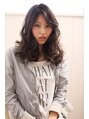 ランダムに巻かれたリラックスカールで、斜めバング、かきあげバングどちらでもいけるミディアムスタイル。小顔に見える絶妙のひし形バランス。絶対に可愛く仕上げます。