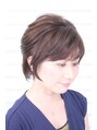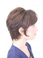前下がりベースのショートボブstyle。トップにボリュームをもたせるためにかけた緩めのパーマで骨格補正をして、ベストバランスに☆落ち着いたブラウンベージュは、王道の大人女子カラー。