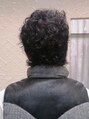 アシンメトリーの2ブロック。強めのパーマを掛けました。