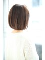 30代むけのボブスタイル☆全体を前下がりにカットし、重くなり過ぎないようにトップにレイヤーをオン。サイドは耳にかけてもオシャレになるように毛量調節しています。カラー7トーンのシアーブラウン☆落ち着いた雰囲気のなかに透明感をだします。