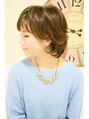 ボブベースの毛先にカールをつけてフワフワさせたガーリーなショート!サイドの内側を耳にかけてすっきりと!カラーは赤味を抑えたマット系ブラウンです!
