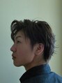 刈り上げすぎない2ブロックショート、前髪に長さを残して緩やかなくせ毛風のパーマをかけました。カラーはスモーク系イエローグレーなので目立ちすぎません。スタイリング次第でイメージの変化が楽しめるようにしました。