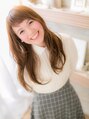 アシメなショートバングでどこまでもキュートに!!ロングでも顔を包みこむカットラインで、小顔効果も★グロッシーだからツヤツヤで、ハイトーンカラーもパサつかず、しっとり束感がポイントです