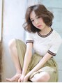 コケティッシュな雰囲気を漂わす、大人かわいいフェミニンボブ。トップから大きいカールでくせ毛風に、スタイリングによってはモード感もだせ、楽しんでいただけるスタイルです^^アッシュベージュカラーでよりラフ感×やわらかさを作っています!