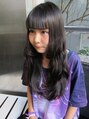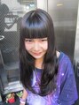 前髪パッツン&姫カット前髪以外はゆるいナチュラルなパーマをあてました。お人形さんみたいなスタイルです。