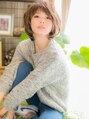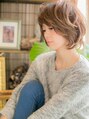前髪から顔周りにかけて、ラウンドにつながるようにカット。ランダムなミックスカールで無造作なクセ毛風に。外国の少女のような、フェアリーでリラクシーな雰囲気に仕上がります♪短めバングでキュートな抜け感を。斜めバングや厚めバングにしてもカワイイ☆