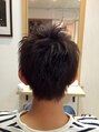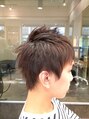さりげないツヤ感と動きのある束感が好印象な無造作ヘアー。サイドはスッキリ、襟足は少し長めに。トップは動きを出したいので少し短めにカットし凹凸を出すように意識しました。前髪を流す事で優しい印象をプッシュ!!