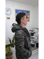 HIP-HOPテイストに、との御要望でした。細か過ぎず、大き過ぎないパーマで程よいアフロスタイルに。回りを刈り上げてタイトにし、顔回りは揃えて よりBLACKに!