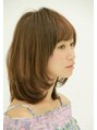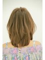 キレイな丸みを帯びたシルエットが魅力のミディ。前上がりの鎖骨下でベースカット。顔周りはレイヤーを入れ、そこにつながるようにトップにもレイヤーを入れる。前髪は目の下ギリギリで流れやすくカット。カラーは10トーンのライムグレージュをオン