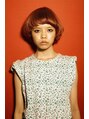 ラウンドボブのマッシュスタイルです。艶のあるオレンジ系のカラーおすすめです。毛先にワンカールのスタイリングがポイントです。動きを出した甘めバングがオシャレを演出。