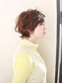 トップにカールの小顔でラフな抜け感スタイルの大人かわいいコケティッシュリラクシーショート。ラウンドボブ/マニッシュ/厚めバング/斜めバング/エッジ/モード/ナチュラルセミディ/甘めバング