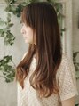 胸元でラフに揺らぐ柔らかな毛束感が色っぽい。上品かつやわらかいグラデーションカラー。やや前上がりのロングレイヤー前髪は目の上ギリでカット。最後にドライカットで束感と流れをon!!ストレートも巻き髪もオススメスタイル。
