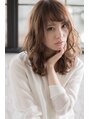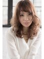 中間から毛先にランダムにパーマをかけたふんわりとした春らしいナチュラルセミディースタイルです。前髪にもワンカールのパーマをかけた甘めバングで可愛らしい雰囲気をプラス。