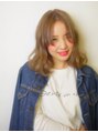 モーブベージュのカラーをベースにハイライトをランダムに入れています。伸ばしかけの前髪もセンターパートで目にかかる感じが今っぽいですよ☆ ナチュラルセミディ エッジ モード