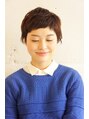 斜めバングに切り込んだベリーショートです。耳上を少し長めに残しているのでそこの毛で遊べます。ピュアなイメージにしたい方、抜け感を出したい方、ミセスの方も◎