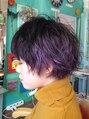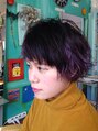 ハイブリーチをした髪にネイビーバイオレットを全体に、ポイントでブルーラベンダーをアクセントに入れたヘアスタイルです。カットは自分でスタイリングした時に束感が出やすいようにスライドカットを沢山施してあります。