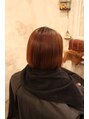 つやの感じられるダーク系カラーで髪をきれいに見せます。 カットはすそのもたつきを取る様にグラデーションを入れました。