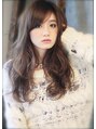 女性らしい印象を求めている方に是非挑戦して頂きたいほつれヌーディーロング。目が大きくなる前髪の長さ、小顔になる顔周りのデザイン、重めスタイル、ひし形ニュアンスパーマで小顔。甘めバング。似合わせ、かきあげ、無造作で美髪。マニッシュレディ、