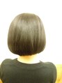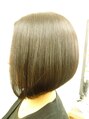 シンプルなボブスタイルにやや前下がりです。自然と内側に入るようにカットしてます。大人可愛いイメージです。
