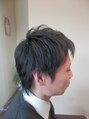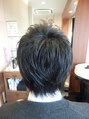 - 全体に動きの出やすいように削ぎを入れて襟足は前から少し見える程度の長さにしています。