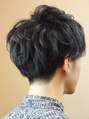 サイドの内側と襟足を刈りあげてスッキリ感をだし、ミックスパーマで黒髪でも重たくみえない動きをプラス