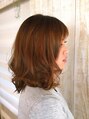 ボブベースにトップのみレイヤーを入れ、スライドカットで質感調整をします。パーマはゆるめにかけ動きとボリュームをだします。斜めに作ったショートバングもオススメです。
