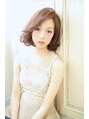 大きくうねる柔らかカールがくせ毛風フレンチスタイルに☆伸ばしかけボブにもオススメです。パーマでカールの持ちを良くして、スタイリング剤はミルクかソフトワックスだけにするのがオススメです。カラーはモカブラウンでツヤを出します。