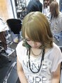 ブリーチ2回後内側ミントグリーン上からかぶさってくる色を薄いアッシュベージュで染めました。ナチュラルかつポイントでオシャレなスタイルです。
