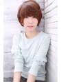 斜めバングと柔らかなラフ質感が醸し出す大人かわいいショートスタイルです。カラーはツヤ重視のブラウン系です。パーマは、部分パーマで柔らかい動きを出しています。