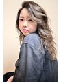 かきあげバングスタイルで、カラーはハイトーンのミルクティーにミックスパーマでシフォンのような質感を演出。流行のウェット系のワックスをもみ込んで完成。柔らかそうな質感が可愛さぐーんっとアップ。
