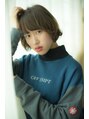 リップラインのラウンドボブ。アッシュ系の透き通るカラーと毛先に軽く削ぎを入れることで重くなりがちなボブも春らしい動きのあるスタイルに。