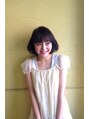 毛先にデジタルパーマでワンカールつけたナチュラルボブスタイルです。厚めバングで女の子っぽさを強調したかわいらしいデザインにしました。