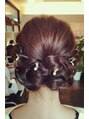 - カーラーでしっかり巻いた後ツイストにした毛束をかさねてまとめました