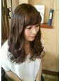 奥行きのある前髪でわけ目をなくし、全体をゆれ動かすくらいのレイヤーカットを入れ、スウィングするくらいにコテ仕上げ!カラーは透明感のあすアッシュベージュで明るく。