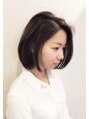 ストレートなボブスタイル。艶感とアッシュ系カラーのシンプルなシルエット。