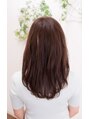 お手入れ簡単ナチュラルセミディスタイル。伸ばしかけの前髪は内側を短くして斜めバング、センターパートの2wayバング☆厚めにとって甘めバングでも。カラーはアッシュベースにモーブカラーを加えてツヤ感アップで春らしく。