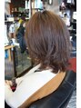 前上がりのベースのヘアデザイン。顔の形や大きさが気になる方は前上がりにはしたくない方が多いですが、デザインによっては前上がりが似合う場合もあります。顔の輪郭でお悩みの方ぜひお任せしてみてください。