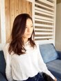 カットは表面、顔まわりにレイヤーを入れて、大きめロッドでパーマをかけます。透明感のでるカラーで上品なイメージになります。