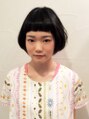 インナーカラーもいれた丸みをしっかり出したボブ。前髪もラインをそろえて短く。