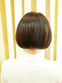 襟足ギリギリから顎ラインにかけてワンレングスボブにカットしました。毛量も重めに残します。バングも眉上で短めに。