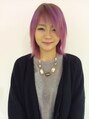 カラーバターで染めたショートヘアに原色エクステを半折で付けてからカットして個性的なラベンダーカラーのボブスタイルに仕上げました!