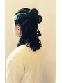 人と被らない特別なセットを、、、とのオーダーだったので、フロントからトップあたりまでを太めの編み込み+細めのねじりあげをmixして華やかな中にもクールさと個性を!