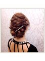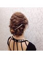 編みこみと裏編みこみを所々ルーズに間引きネープにボリュームを出したアレンジスタイルパーティーにはぴったりの華やかなアップスタイルです