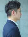 サイドとバックは刈り上げてすっきりさせた七三ショートスタイルです。ニュアンスパーマをかける事でより動きが出て春、夏オススメのスタイルになってます。